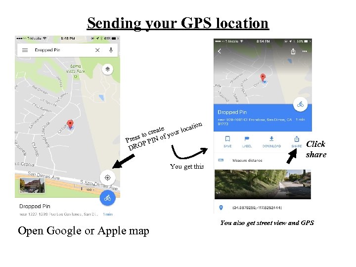 Из любой точки в пределах приложения, вы можете легко и быстро обмениваться данными о своем текущем местоположении с помощью предпочтительного приложения для обмена сообщениями. Ваши друзья получают ваши координаты GPS и ссылку на Google Maps с вашим местоположением на ней. В случае возникновения чрезвычайной ситуации, вы можете отправить SMS с вашей GPS-локацией, даже при отсутствии подключения для передачи данных. Кроме того, вы можете скопировать ваши GPS-координаты в буфер обмена и вставить их в картографические приложения, чаты или электронные письма.