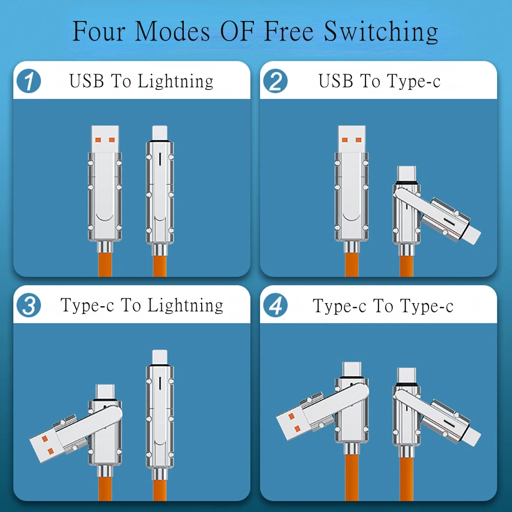 "YurKem 120W Zinc Alloy 2 In 2 Silicone Wire Fast Charging Cable Data Transmission Type-c To Lightning Type-c Charging Cable" * Buy Now With Free Shipping Just For $5