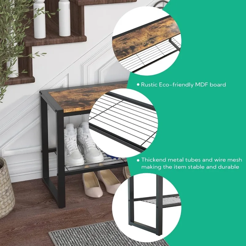 Yusong Entryway Bench Shoe Bench Rack with Mesh Shelf, 35.4" Long Storage Bench with Sturdy Metal Frame, Shoe Storage Organizer - Купить с бесплатной доставкой