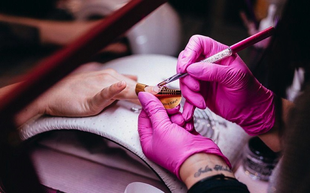 Naga i naoliwiona pani daje sobie z palca