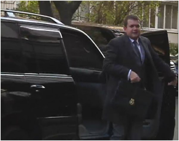 Артем Петрашкин приезжает в прокуратуру на джипе с водителем