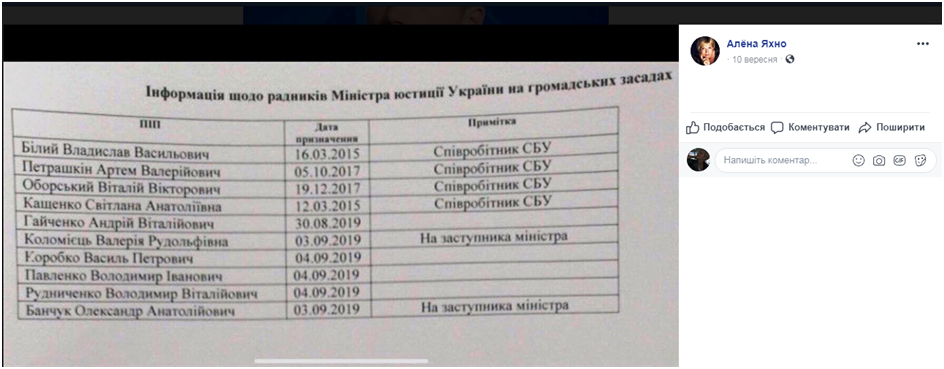 Уже в 2019 году Петрашкин фигурировал в списках советников министра юстиции Дениса Малюськи. Примечательно, что значился в то время он уже сотрудником СБУ, которая и взяла в оборот “Химпром”.