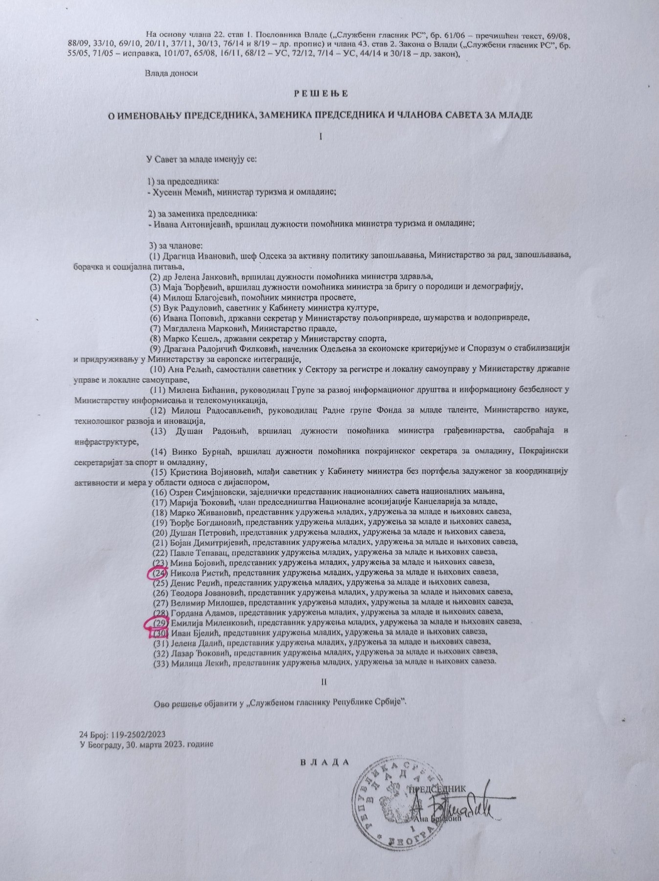 Интересантно је да су решењем од 30. марта 2023. које је потписала Брнабић, све три наше младе опозиционе наде које спашавају Србију од свег зла које чини Влада Србије, а Бјелић и од највећег, тј. од рудника литијума, постављени за чланове Савета за младе за који стоји: "КАО САВЕТОДАВНО ТЕЛО ВЛАДЕ, САВЕТ ОБЕЗБЕЂУЈЕ ДА СЕ ГЛАС МЛАДИХ ЧУЈЕ И УВАЖИ, ТАКО ДА МЛАДИ МОГУ УЧЕСТВОВАТИ У ИЗРАДИ, СПРОВОЂЕЊУ И ПРАЋЕЊУ РЕАЛИЗАЦИЈЕ ЈАВНИХ ПОЛИТИКА."