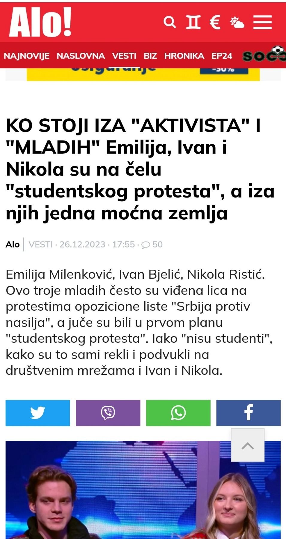 Кад се приказивао тај новогодишњи програм, кажу ови из Ало да иза нашег студентског покрета отпора стоји нека моћна држава. Ето нисмо знали да је и држава Србија моћна, добро је да сад то знамо.