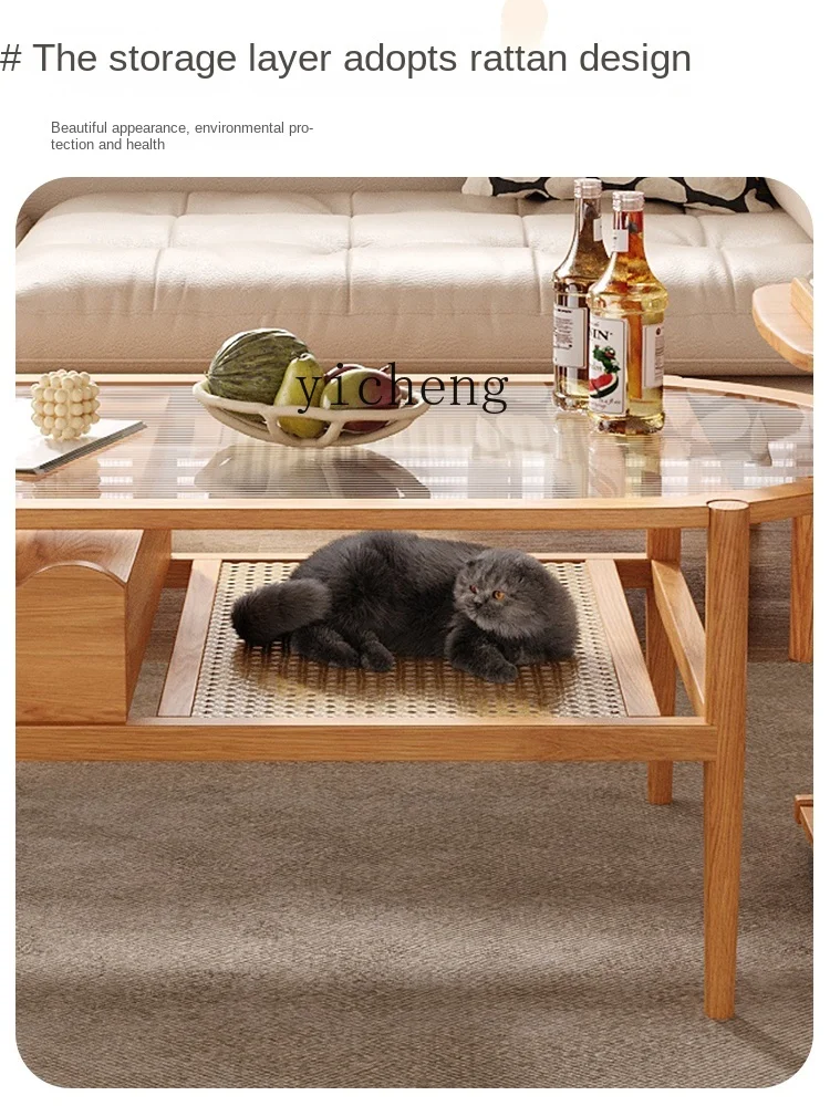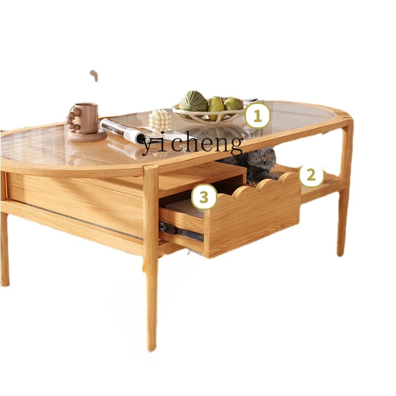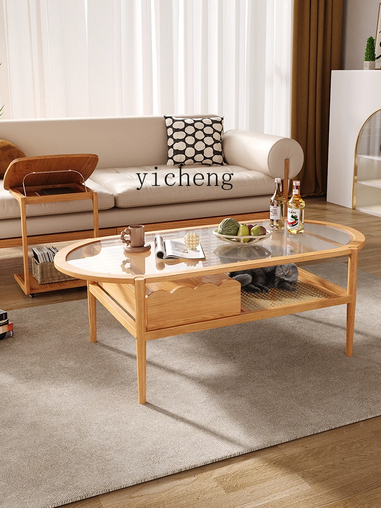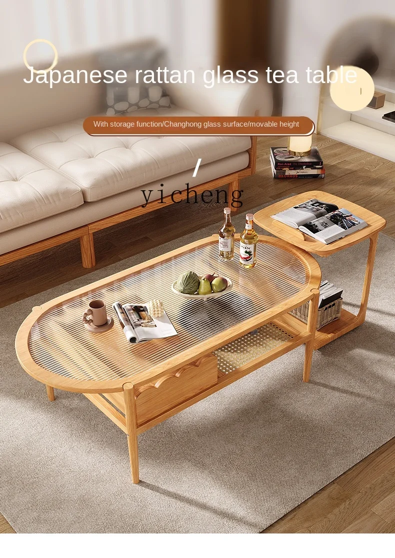 JKAWNzrdmSHere you can buy ZC Log Style Living Room Solid Wood Tea Table Silent Wind Changhong Glass Rattan Multi-Functional Oval Tea Table with free delivery to your post office.