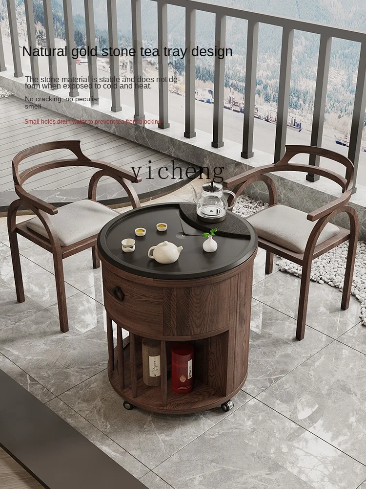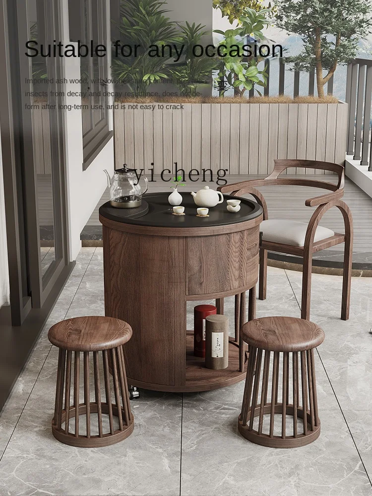 "ZC Solid Wood Balcony Tea Table and Chair Kettle Integrated Multifunctional Tea Table Movable Tea Table with Wheels Tea Cart" * Buy Now With Free Shipping Just For $1098