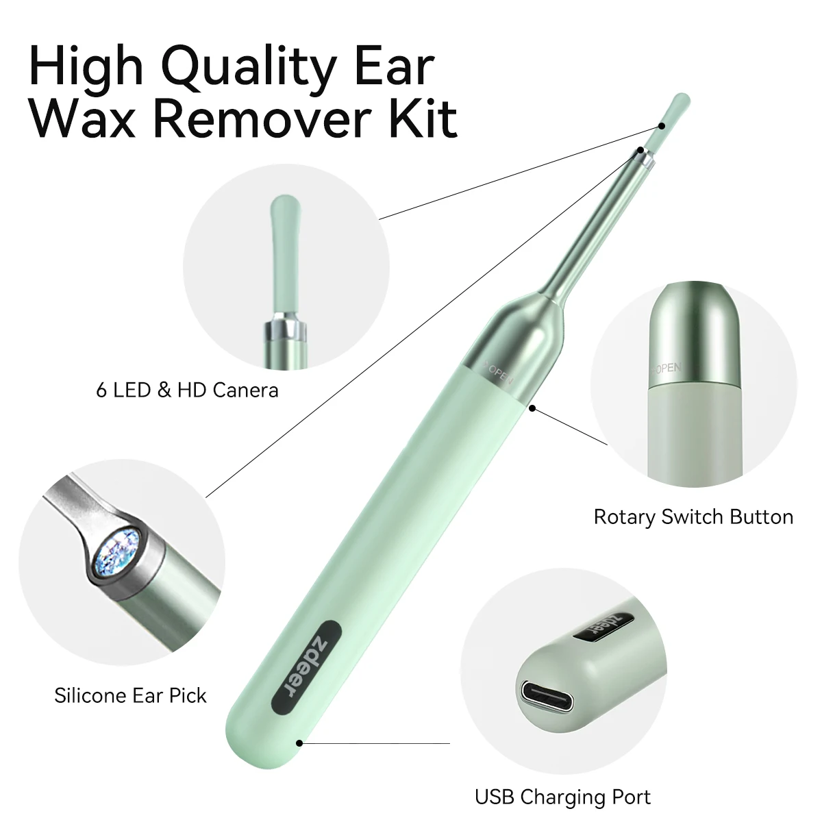«ZDEER Ear Wax Removal Tool with 1080P HD,Ear Cleaner with 6 LED Lights,Ear Camera IP67 Waterproof 5 Pcs Ear Pick for iOS,Android» по лучшей цене на рынке! Всего за 24$ (2280рублей)