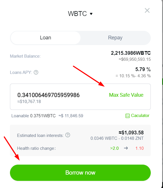 переходим к Loan\Repay выбираем максимум и жмем Borroving