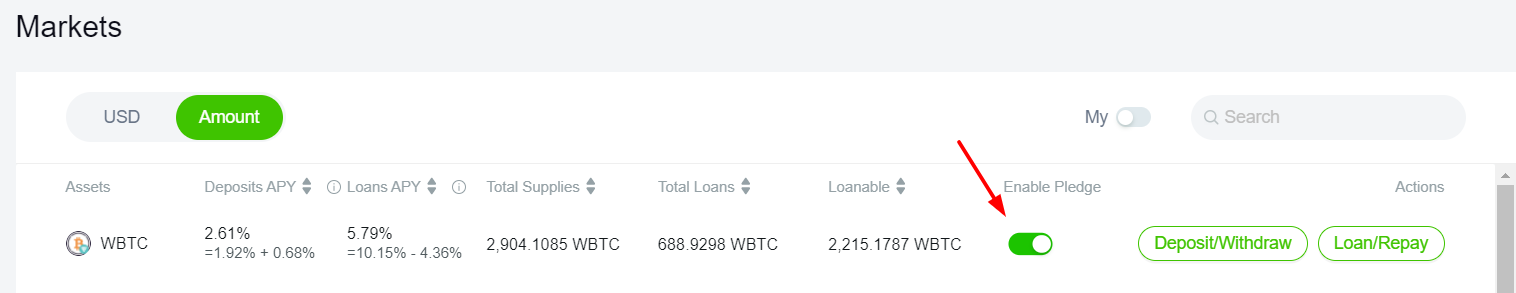 Далее нажимаем активируем залог Enable Pledge