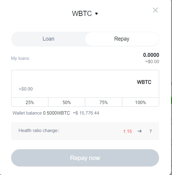 Жмем Repay что бы получилось не меньше 10.000$ после жмем Withdraw