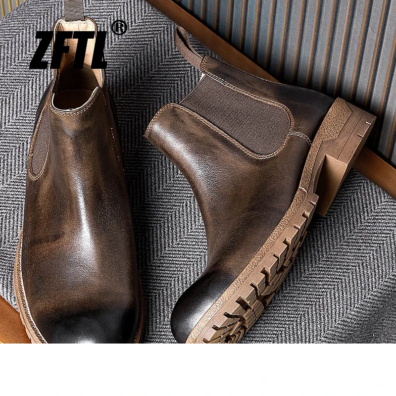 «ZFTL Men's Chelsea Ankle Boots New British high top Martins boots Male head layer cowhide work boots trend Genuine Leather» по лучшей цене на рынке! Всего за 124$ (11780рублей)