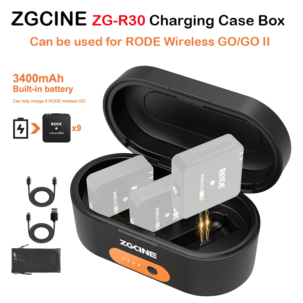 ZGCINE ZG-R30 Charging Case Box with 3000mAh Built-in Battery Portable Fast Charging Power Bank for Rode Wireless GO I II Mic - Купить с бесплатной доставкой