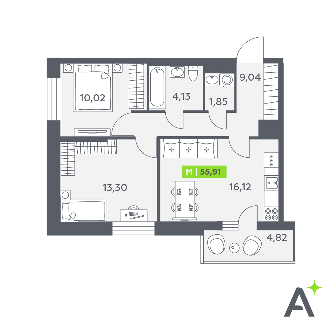 Корпус Аквилон VERBA, евро 3-комн, 3 эт, 55.9 м², сдача 2 кв. 2027.