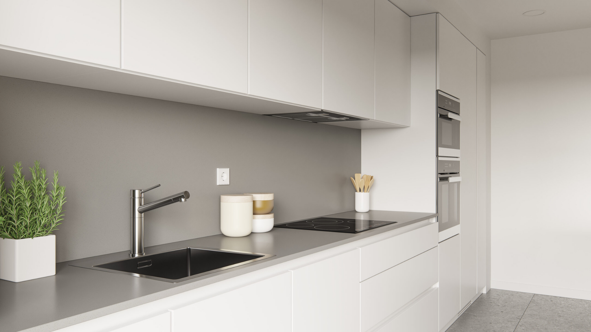 • кухнями с бытовой техникой (индукционная плита, вытяжка, духовка и микроволновая печь)
