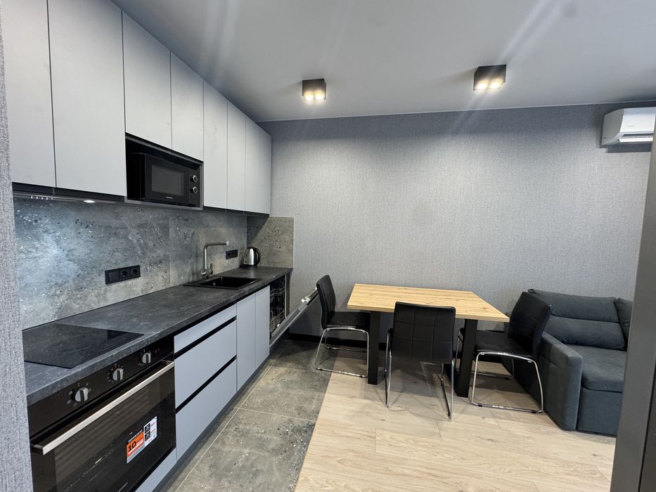 Оренда 1-кімнатної квартири в ЖК «Файна Таун». ЖК «Файна Таун» — це масштабний проект квартальної забудови з 57 будинками комфорткласу, з багатоетапною інфраструктурою, зеленими зонами, пішохідними маршрутами, велодоріжками, зонами відпочинку, власною «розумною» вуличною інфраструктурою — лавки з підзарядками, LED-освітлення, зарядки для електромобілів тощо. Комплекс розташований у мікрорайоні Нивки — поруч парк «Веселка», школи, дитсадки, торговельні заклади, зручне транспортне сполучення.