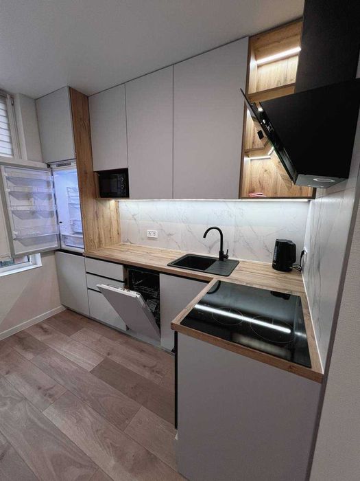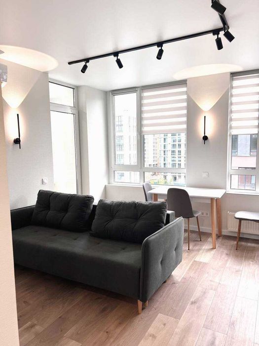 В довгострокову оренду здається однокімнатна квартира в ЖК Файна таун, 6 поверх, площа 40 кв.м. Кухня-вітальня 15,5 кв.м. з усією необхідною побутовою технікою, спальня 11,5 кв.м. з двоспальним ліжком та ортопедичним матрацом, коридор 6 кв.м. з місткою гардеробною, санвузол з повноцінною ванною, на балконі організовано окреме робоче місце. В квартирі зроблено якісний ремонт, меблі та вся необхідна побутова техніка: бойлер 80л, прально-сушильна машина, електросушарка, холодильник, посудомийка, мікрохвильовка, варильна поверхня, духова шафа, витяжка, електрочайник, два кондиціонера, пилосос, відеодомофон, телевізор. Теплі підлоги в санвузлі та на балконі. Встановлені лічильники на всі комунікації, зокрема лічильник тепла, проведений інтернет (оптоволокно). Територія комплексу закрита, навколо вся необхідна розвинена інфраструктура для комфортного проживання.