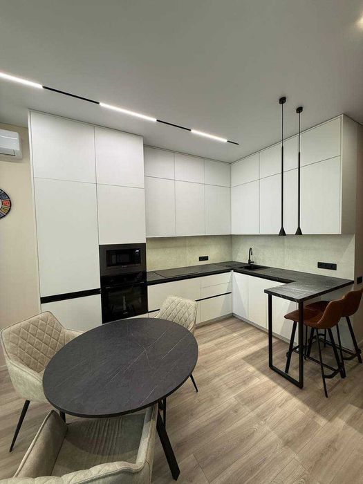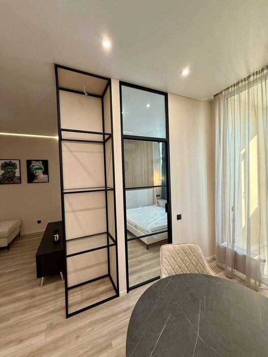 Міжкімнатні двері прихованого монтажу. Кухня гостьова: вбудовані меблі, побутова техніка розкладний диван, кондиціонер, телевізор. Велика гардеробна . Сан вузол сумісний, , бойлер. Лоджія з підігрівом . Розвинута інфраструктура, метро КПІ, універмаг Україна, Цирк, метро Університет, Майдан Незалежності.