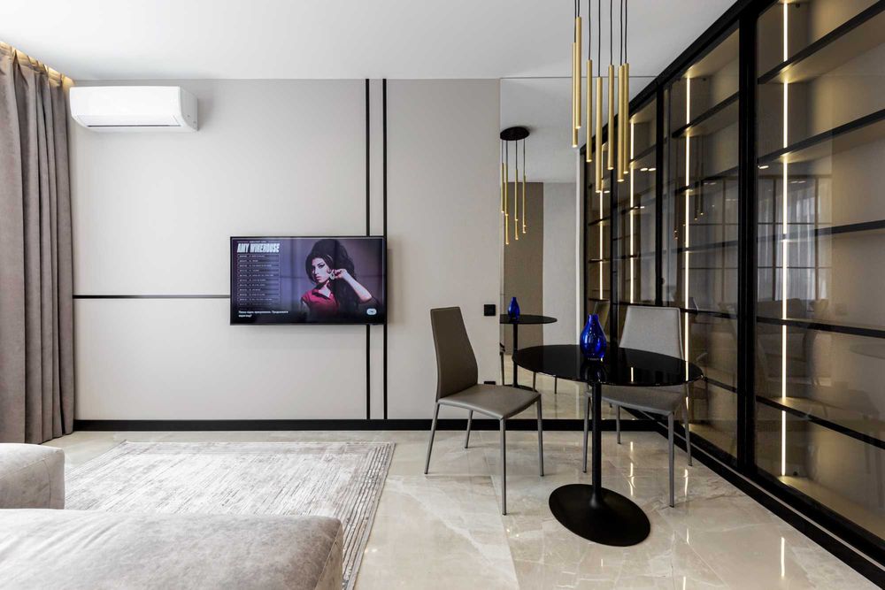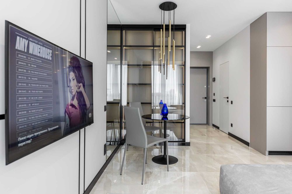 Квартира з дуже дорогим, розкішним, авторським ремонтом, обладнана всіма необхідними меблями та технікою (бойлер, кондиціонер, посудомийка, тепла підлога), дуже світла та простора, гарна шумоізоляція.