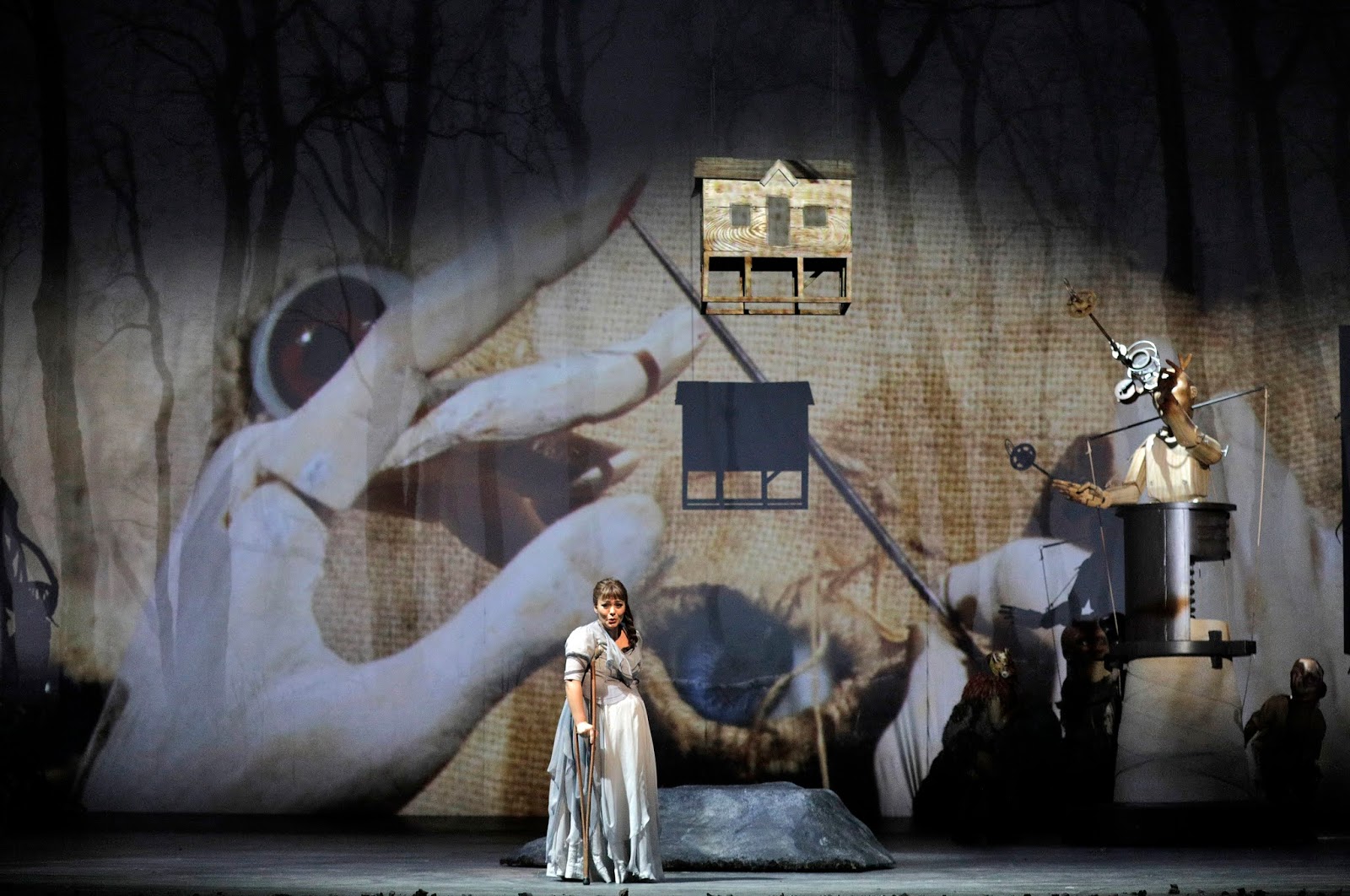 Фауст по-прежнему смотрит в зеркало . Мефистофель, дотягиваясь и обмахиваясь веником, продолжает: Я, как король, на вас взираю с трона . Вот скипетр мой, и только нет короны .