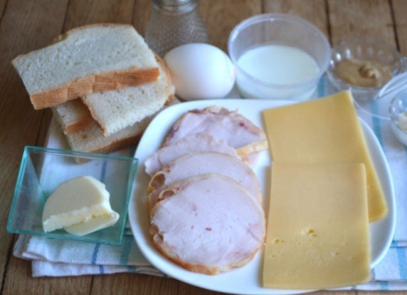 1. Подготавливаем продукты для жареных горячих бутербродов с сыром и ветчиной.