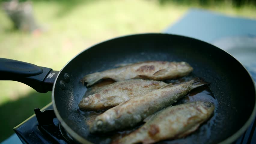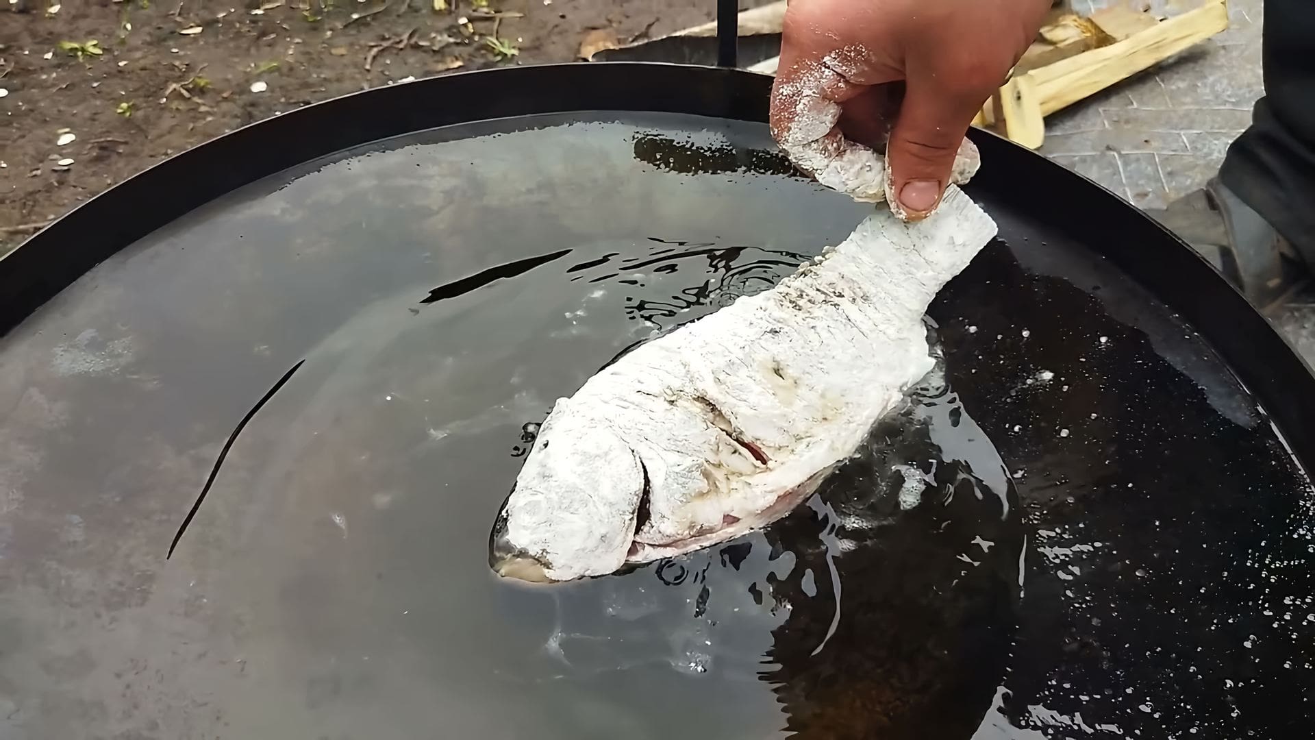 Жарка рыбы на воде на сковороде