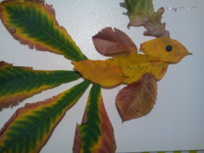 Жарптица из листьев