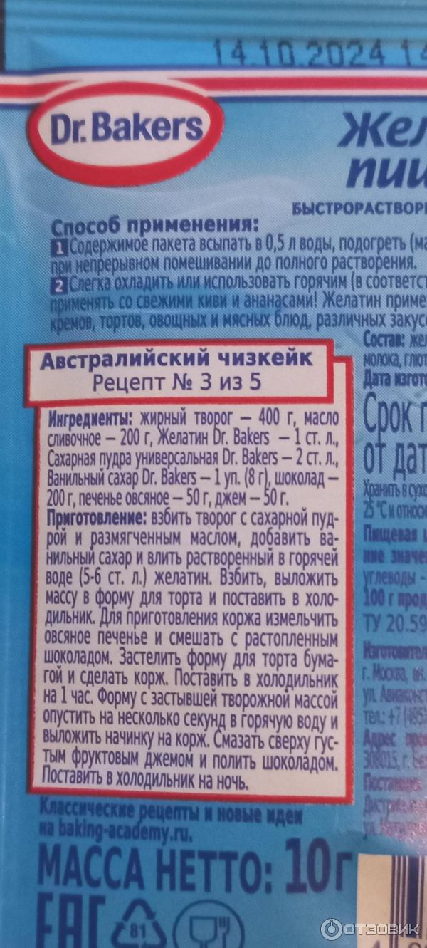 Желатин пищевой bakers 155 фото