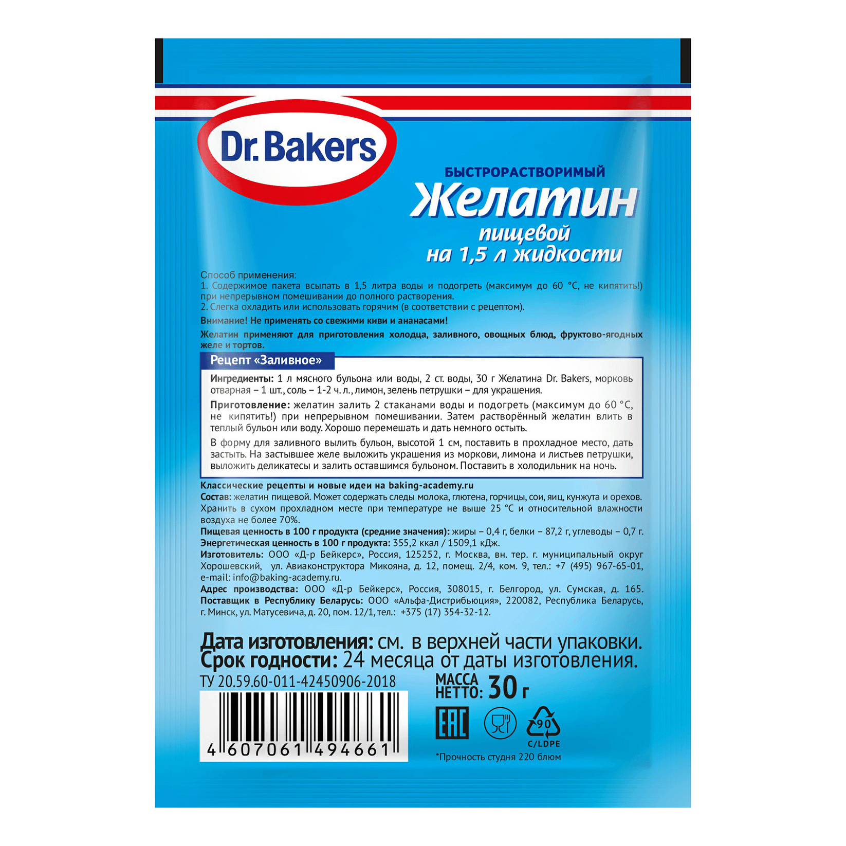 Желатин пищевой bakers