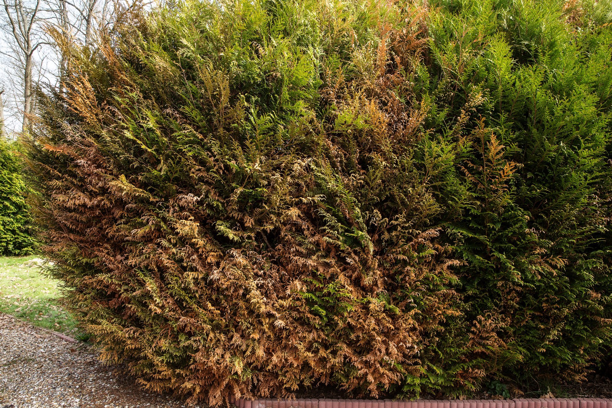 Желтеет крона у туи