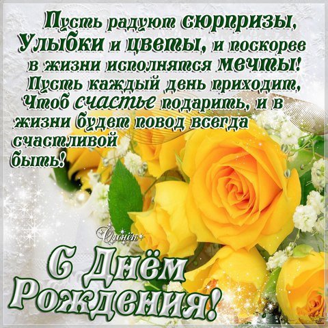 Картинка с днем рождения женщине желтые розы - оригинальное поздравление для соц . сетей . Мерцающая открытка Картинка с днем рождения женщине желтые розы обязательно понравится каждой получательнице .
