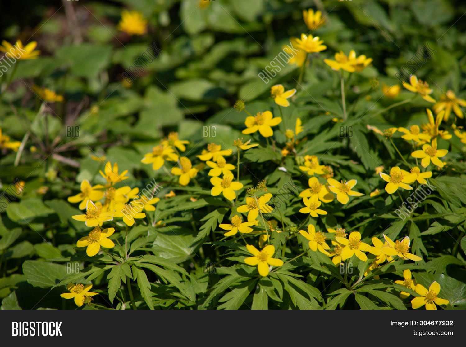 Желтые цветочки в лесу весной