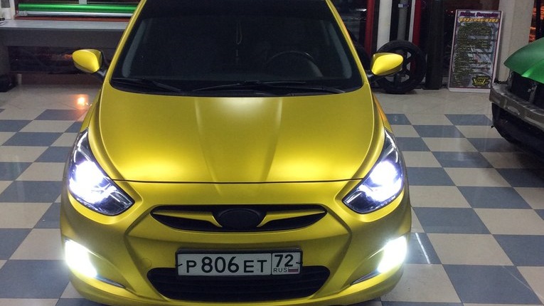 Солярис покрашен в желтый мат - Hyundai Solaris клуб