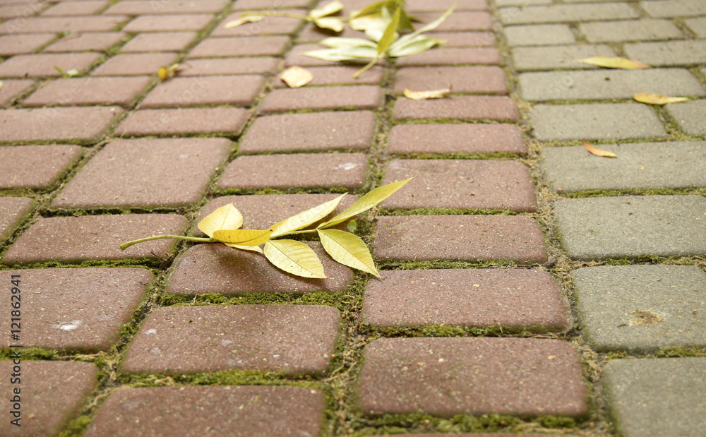 Желтый лист на асфальте