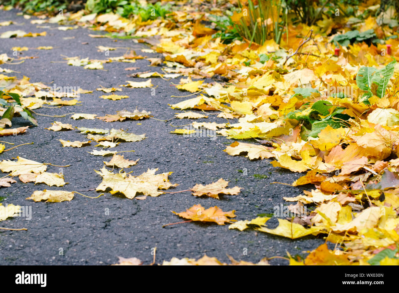 Желтый лист на асфальте 142 фото