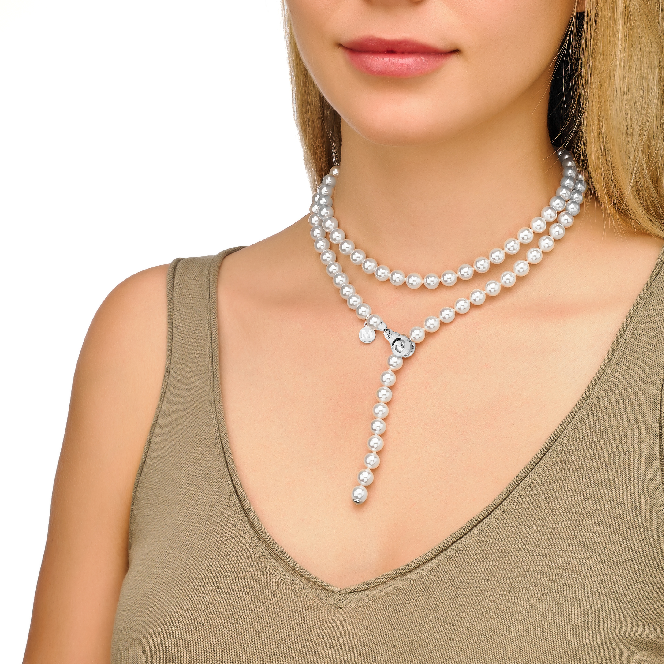1 . Длинная нить жемчуга . Жемчуг на длинной нити смотрится тонко и изящно Длинную нить нужно просто небрежно набросить на шею . Как ни странно, но вариант длинной Фото девушки справа демонстрирует, как можно интересно сочетать жемчуг с цепочками из белого металла .