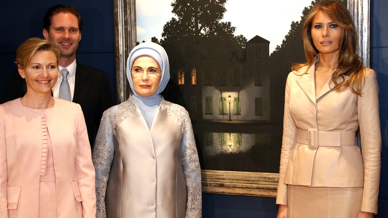 А Эмине Эрдоган, супруга президента республики, на фото стоит в хиджабе прямо перед женой (мужем?) премьера Люксембурга . Причём расстановка на протокольных снимках с персонами такого уровня оговаривается заранее, так что именно такое соседство — не . . .