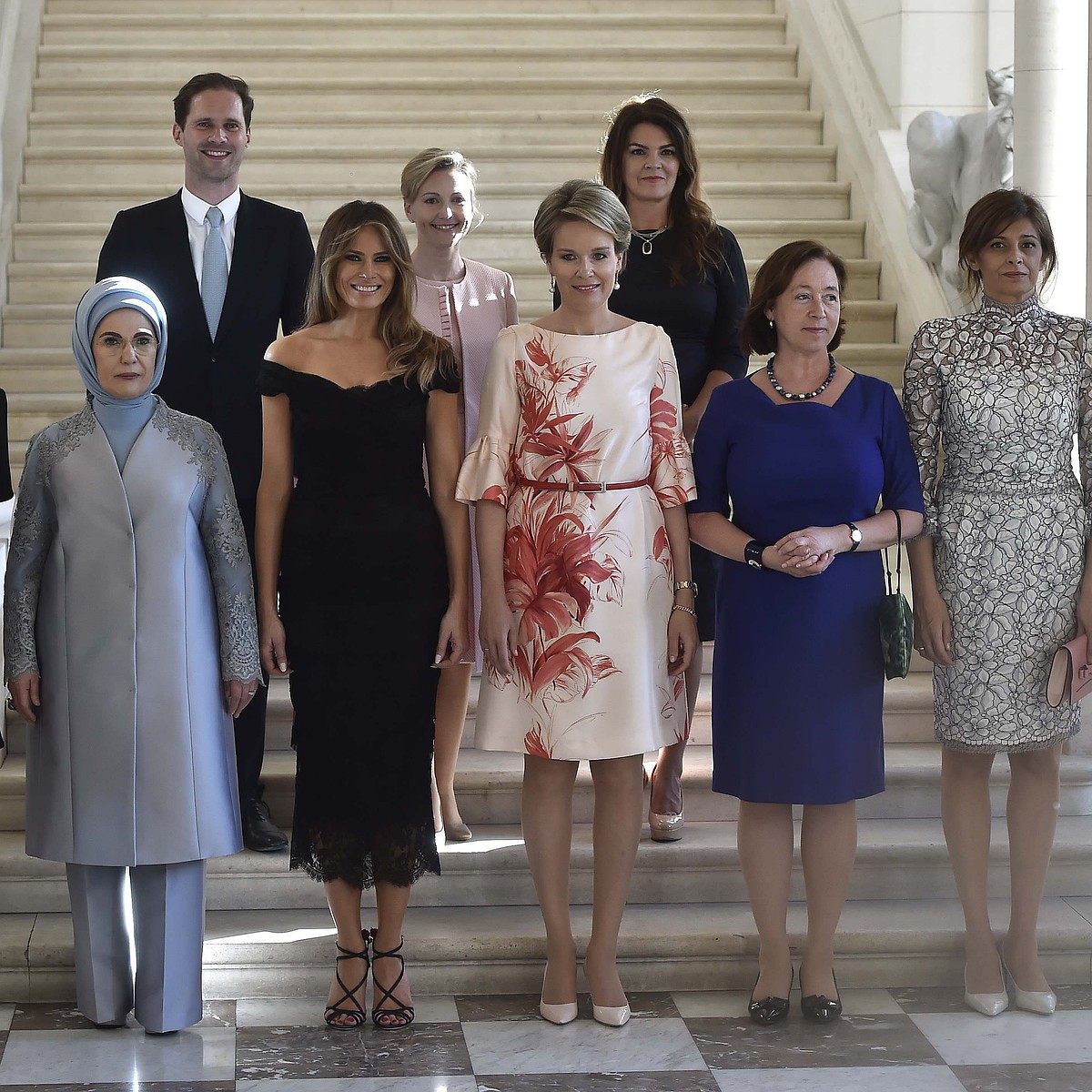 . . .президент и супруга президента Франции, то Ксавье Беттель и Готье Дестне, несмотря на Есть в Люксембурге и армия численностью в 900 человек, плюс рота почетного караула . жена короля Филиппа, супруга президента США — Мелания Трамп, супруга президента Турции . . .