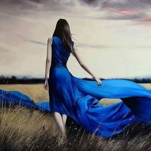 Женщина В Синем Платье Фото