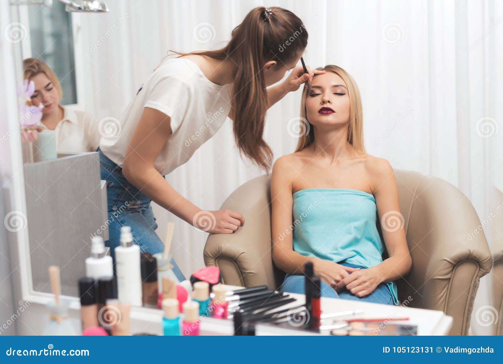 Женщина делает макияж и бьется головой 117 фотографий