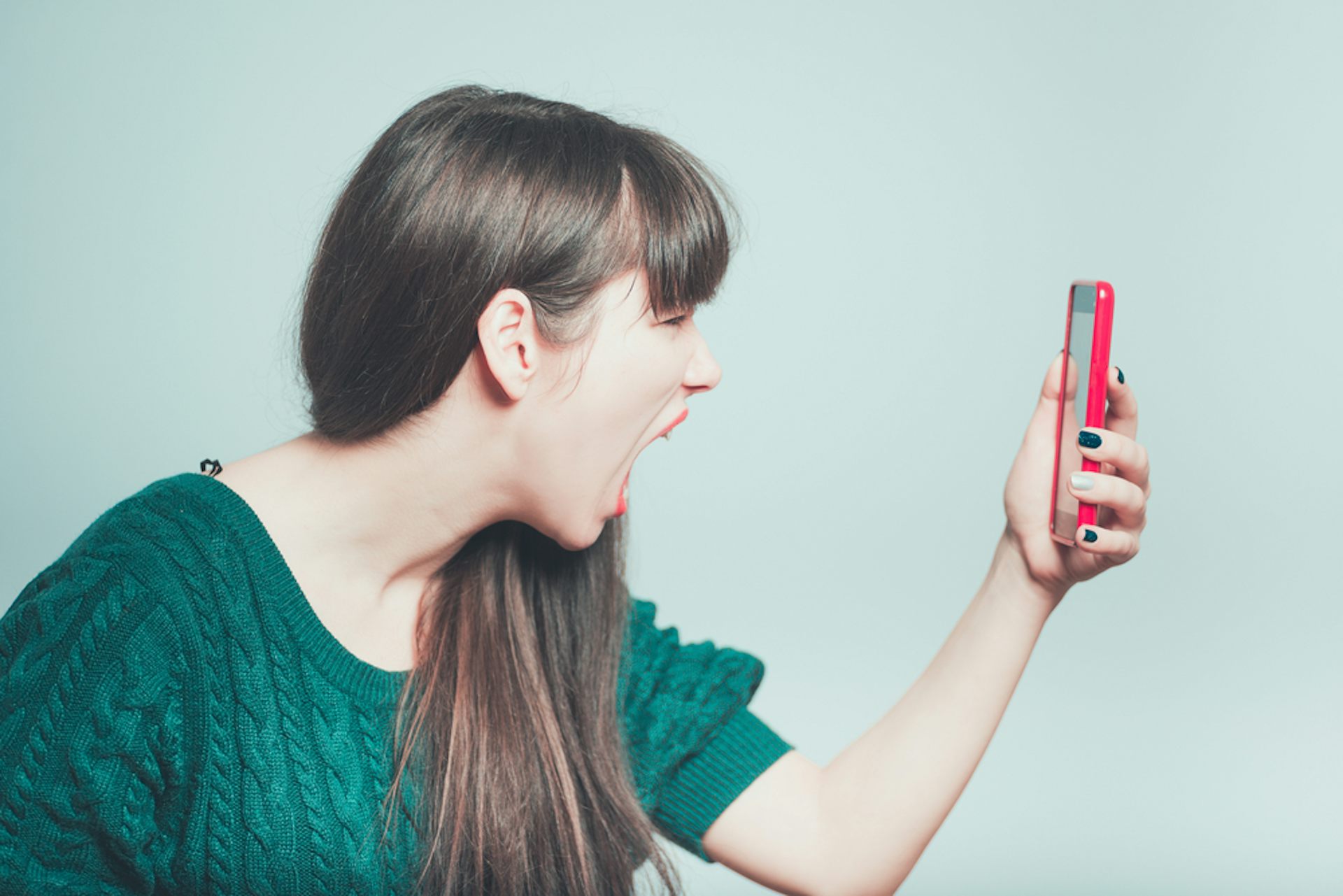 Женщина отключает телефон