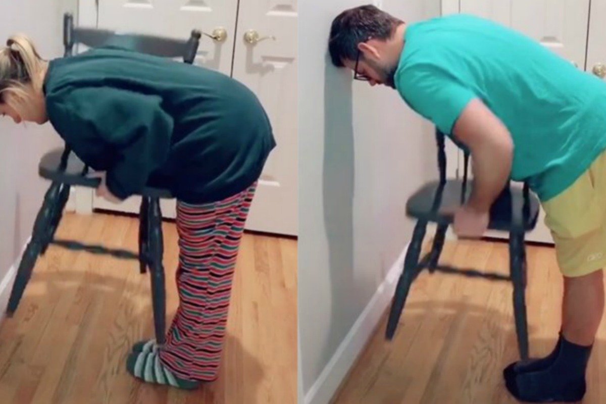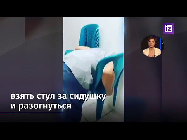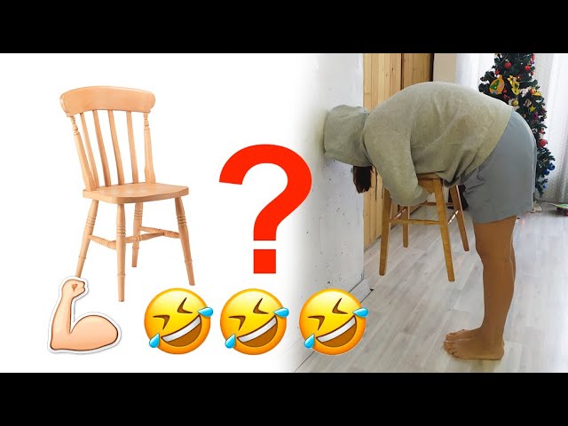 Женщина поднимает стул