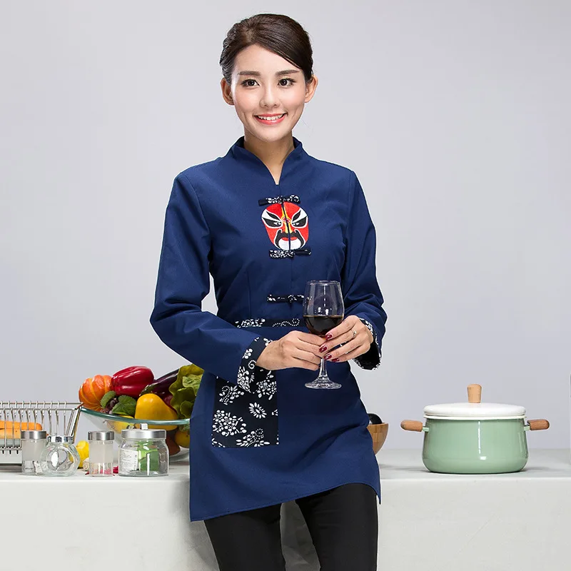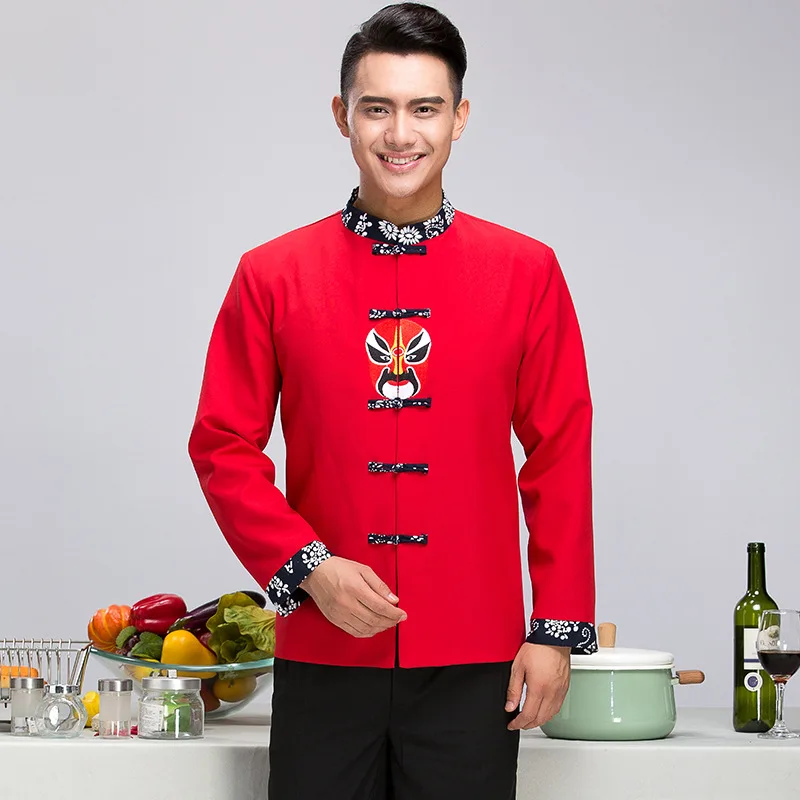 «Женская рабочая одежда с длинным рукавом, женская красная куртка шеф-повара в виде маски Пекинской оперы, комбинезоны, рабочая одежда» по лучшей цене на рынке! Всего за 21$ (1995рублей)