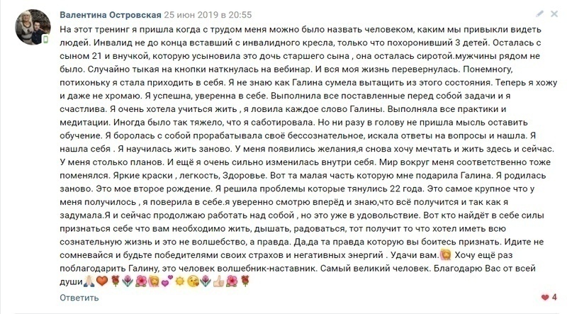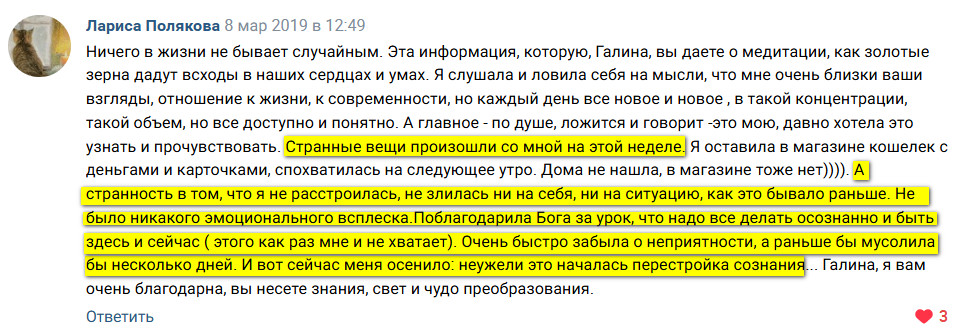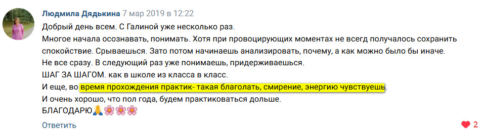 Вот несколько отзывов о практиках от моих дорогих участниц. Почитайте что пишут Галина и Лариса: