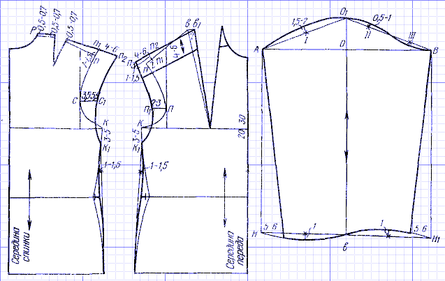 Готовая выкройка-основа переда 54 размера с основными значениями - на фото 10 . Длина от точки горловины 1 до линии бедер - 70 см, длина до линии переда - 50 см, длина линии груди - 29,5 см, длина . . .