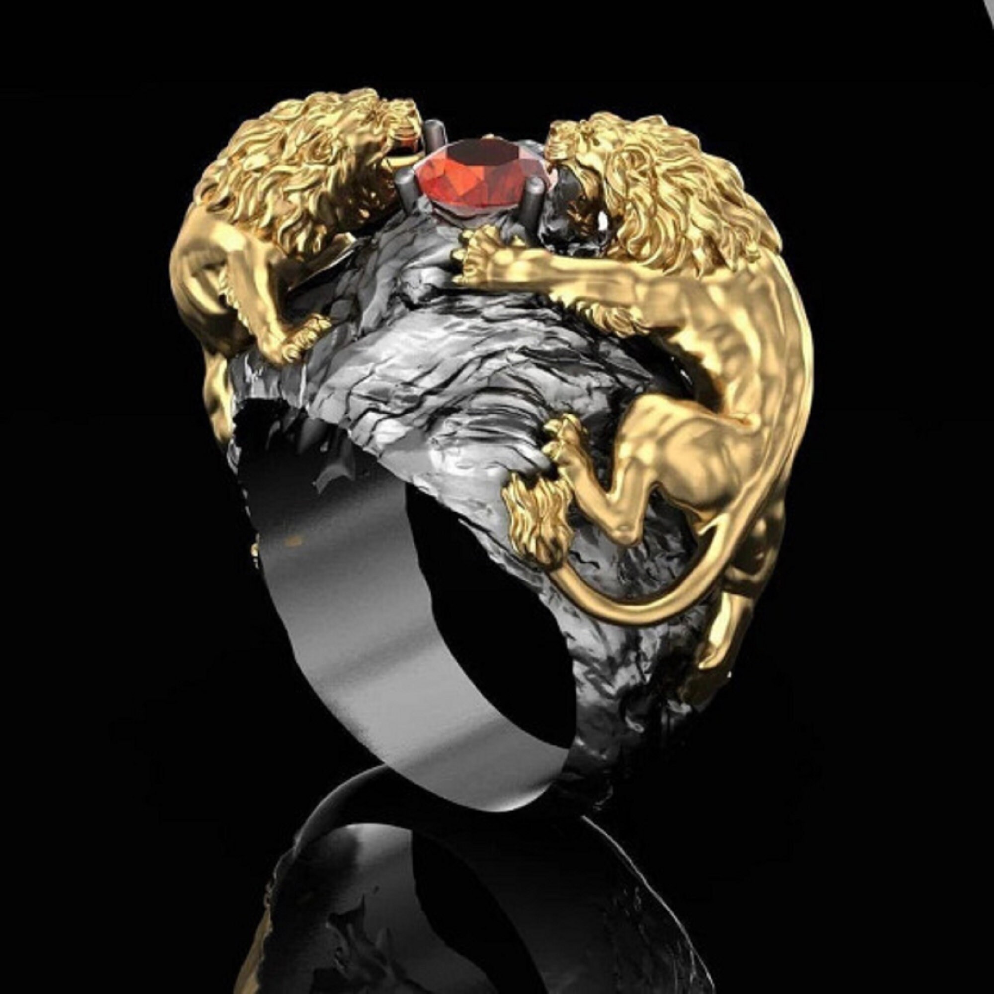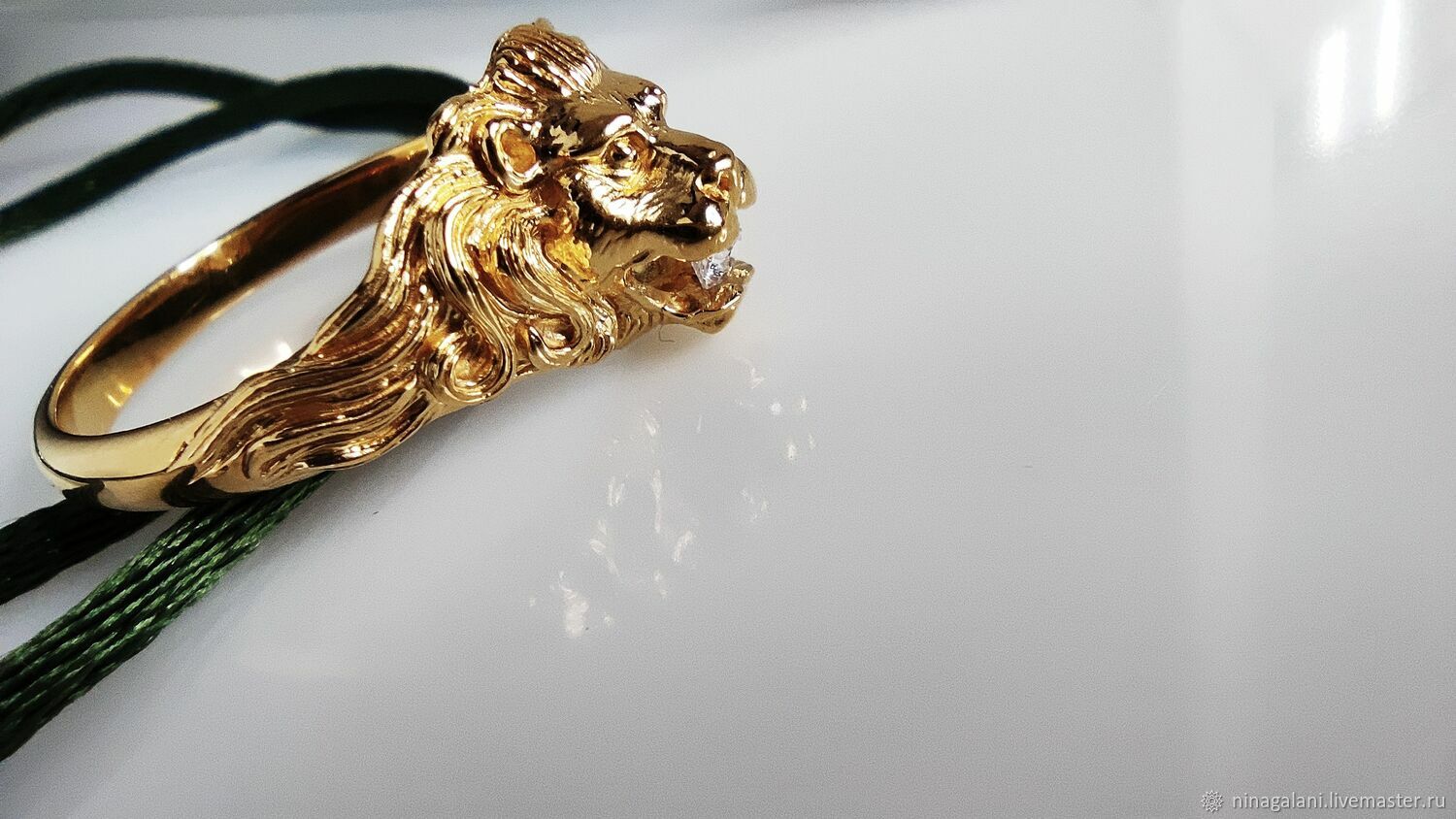 Женское кольцо лев
