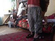 Мать моет на кухне посуду, а сын пристаёт к ней и трахает