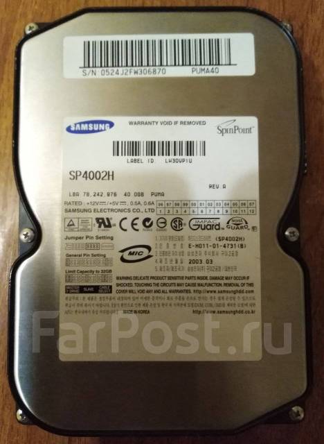 Жесткие диски - большой выбор объявлений комплектующих и аксессуаров от магазинов и продавцов, . . . Жесткий диск HDD 3,5'' Samsung SV2001H 20Gb IDE(PATA) Полностью рабочий .