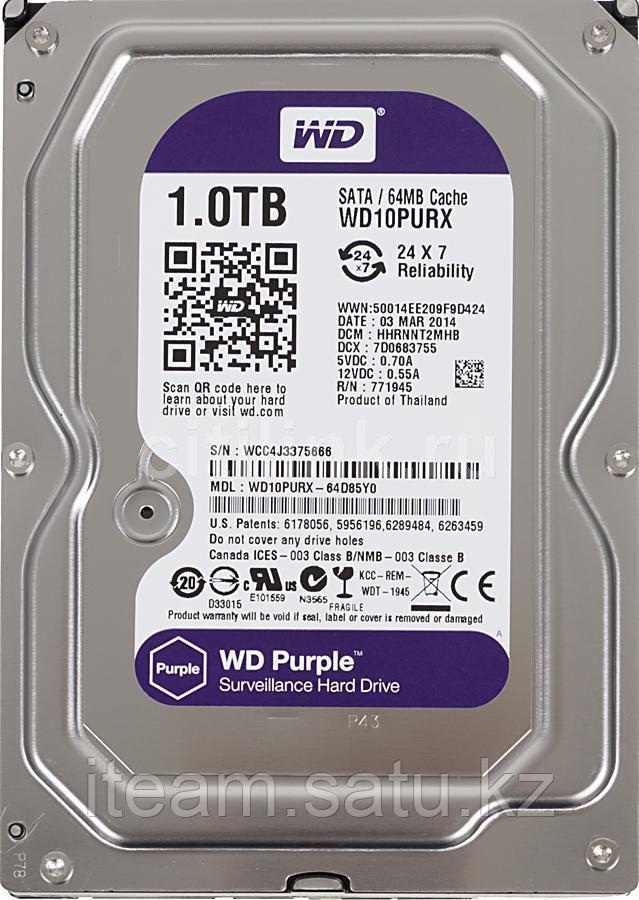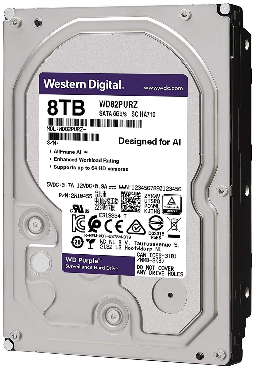 Жесткий диск Western Digital Purple 8 Тб WD80PURZ SATA HDD 24x7 для систем видеонаблюдения , Жесткие диски для систем видеонаблюдения , Жесткие диски формата 3 .5" , Жесткие диски с буфером 128 Мб