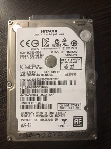 Жесткий диск для ноутбука HGST Hitachi Travelstar 500GB 2 .5" 16MB 7200rpm (HTS727550A9E364) SATAII Б/У В наличии 1 ед . 505 грн .