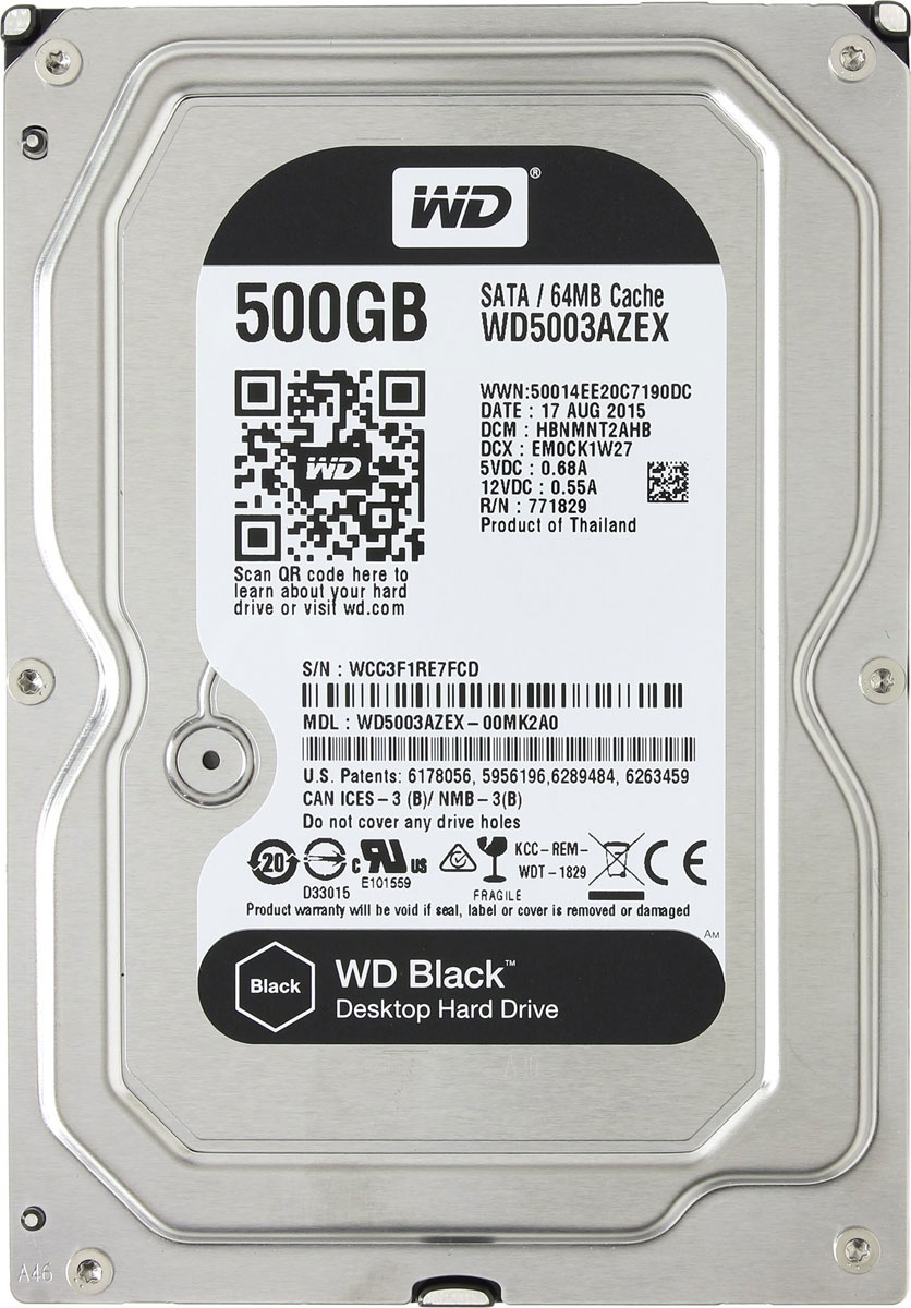 Жесткий диск Western Digital Caviar Black 500 Гб WD5001AALS 500 Гб SATA Жесткие диски со скоростью вращения шпинделя 7200 оборотов в минуту , Жесткие диски емкостью 500 Гб , Жесткие диски формата 3 .5" , Жесткие диски с буфером 32 Мб
